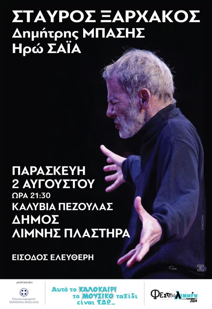 Η Περιφέρεια Θεσσαλίας και ο Δήμος Λίμνης Πλαστήρα, στο πλαίσιο του Φεστιβαλ Λιμνών 2024 διοργανώνουν μεγάλη συναυλία με τον Σταύρο Ξαρχάκο και ερμηνευτές το Δημήτρη Μπάση και την Ηρώ Σαϊα.