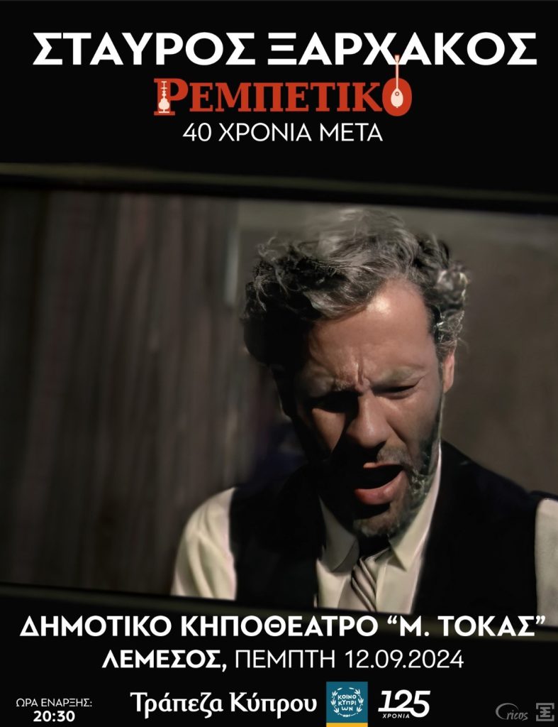Η Τράπεζα Κύπρου στο πλαίσιο των εορτασμών για τα 125 χρόνια της παρουσιάζει το πολιτιστικό γεγονός της χρονιάς: Σταύρος Ξαρχάκος ~ Ρεμπέτικο ~ 40 χρόνια μετά Μετά από τέσσερα σαρωτικά SOLD OUT στο Ωδείο Ηρώδου Αττικού και στο Μέγαρο Μουσικής Αθηνών, το θρυλικό ΡΕΜΠΕΤΙΚΟ του Σταύρου Ξαρχάκου παρουσιάζεται τώρα και στην Κύπρο. Μιά ιστορική συναυλία, […]