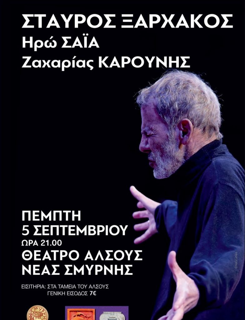 Η συναυλία που θα πραγματοποιήσει ο Σταύρος Ξαρχάκος την Πέμπτη 5 Σεπτεμβρίου 2024 στο Θέατρο Άλσους Νέας Σμύρνης θα αποτελέσει την εναρκτήρια εκδήλωση του πολιτισμικού φεστιβάλ του Δήμου Νέας Σμύρνης “ΙΩΝΙΚΕΣ ΓΙΟΡΤΕΣ”. Μαζί του οι ερμηνευτές Ηρώ Σαϊα και Ζαχαρίας Καρούνης.